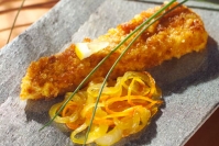 Breaded Sea Bass over Onion Orange Marmalade